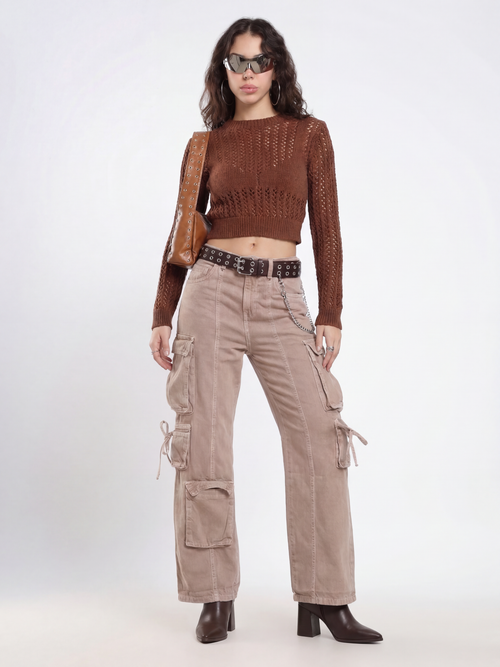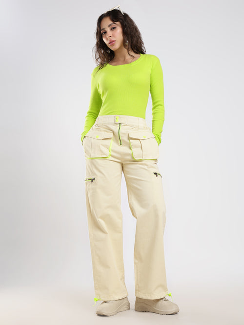 Mid-rise trousers made of cotton blend fabric. Slim straight-leg silhouette. Featuring flap cargo pockets. Clean seam detailing. Front zip and button fastening.